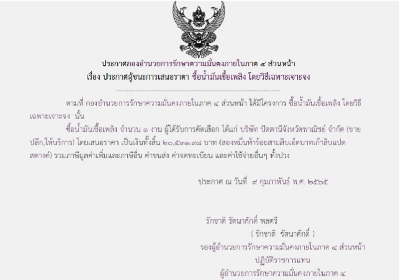 จัดซื้อ จัดจ้างประกาศผู้ชนะการเสนอราคา ประกาศผู้ชนะการเสนอราคา ซื้อน้ำมันเชื้อเพลิง โดยวิธีเฉพาะเจาะจง (20,531.98 บาท) March 5, 2022 415 Share Facebook Twitter Google+ Telegram LINE