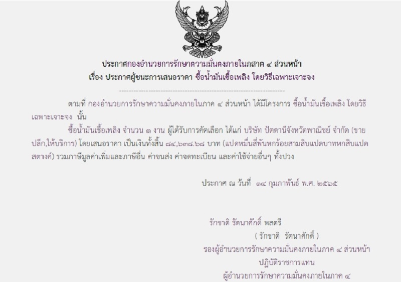 จัดซื้อ จัดจ้างประกาศผู้ชนะการเสนอราคา ประกาศผู้ชนะการเสนอราคา ซื้อน้ำมันเชื้อเพลิง โดยวิธีเฉพาะเจาะจง (84,638.68 บาท) March 5, 2022 410 Share Facebook Twitter Google+ Telegram LINE