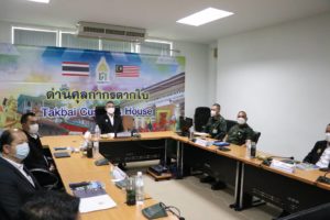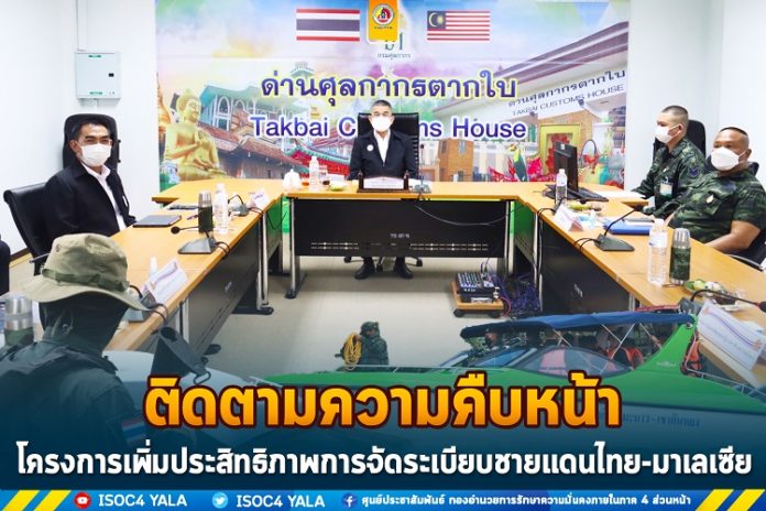 วันที่ 11 มีนาคม 2565 ณ ด่านพรมแดนด่านศุลกากรตากใบ อำเภอตากใบจังหวัดนราธิวาส พลเอก ชัยชาญ ช้างมงคล รัฐมนตรีช่วยว่าการกระทรวงกลาโหม/ประธานกรรมการผู้แทนพิเศษของรัฐบาล, พลเอก พรศักดิ์ พูลสวัสดิ์, คุณรัชดา ธนาดิเรก กรรมการผู้แทนพิเศษของรัฐบาล และ พลเอก สุพจน์ มาลานิยม เลขาธิการสภาความมั่นคงแห่งชาติ ลงพื้นที่ประชุมรับทราบความคืบหน้าการดำเนินโครงการเพิ่มประสิทธิภาพการจัดระเบียบชายแดนไทยมาเลเซีย เพื่อขับเคลื่อนติดตามงานการแก้ไขปัญหาในพื้นที่จังหวัดชายแดนภาคใต้ ณ ด่านศุลกากรตากใบ โดยมี มีพลโท เกรียงไกร ศรีรักษ์ แม่ทัพภาคที่ 4/ผู้อำนวยการรักษาความมั่นคงภายในภาค 4,พลตรี เฉลิมพร ขําเขียว ผู้บังคับหน่วยเฉพาะกิจนราธิวาส ,นายสนั่น พงษ์อักษร ผู้ว่าราชการจังหวัดนราธิวาส, ว่าที่ร้อยตรี จิรัสย์ ศิริวัลลภ นายอำเภอตากใบ,นายอติสันติ์ ภูวพิพัฒนวงศ์ นายด่านศุลกากรตากใบ และส่วนราชการที่เกี่ยวข้อง เข้าร่วมการประชุมครั้งนี้