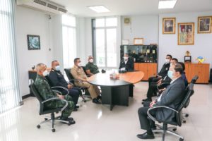 ในโอกาสนี้ รัฐมนตรีช่วยว่าการกระทรวงกลาโหม/ประธานกรรมการผู้แทนพิเศษของรัฐบาลและคณะได้ร่วมรับฟังการบรรยายสรุปสถานการณ์ ในพื้นที่จากหน่วยเฉพาะกิจนราธิวาส เพื่อ รับทราบสถานการณ์ภาพรวม และภาพรวมด้านเศรษฐกิจการค้าขายบริเวณด้านพรมแดนไทย – มาเลเซีย ซึ่งพื้นที่อำเภอตากใบ จังหวัดนราธิวาส มีช่องทาง เข้า – ออก ติดกับประเทศเพื่อนบ้าน โดยมีจุดผ่านแดนถาวร 1 แห่ง จุดผ่อนปรนการค้า 3 แห่ง และช่องทางธรรมชาติ จำนวน 26 จุด มีแนวลำน้ำโกลกกั้นเขตแดน โดยมีหน่วยงานในพื้นที่ที่มีการบูรณาการร่วมกันในการปฏิบัติภารกิจในการรักษาความมั่นคงปลอดภัยให้กับประชาชน ดูแลป้องกัน สกัดกั้น ยับยั้งการลักลอบเข้าเมืองโดยผิดกฎหมาย การขนสินค้าหลีกเลี่ยงภาษี การค้ายาเสพติด ตลอดจนการควบคุมคัดกรองบุคคลในการป้องกันการแพร่ระบาดของโรคติดเชื้อโควิด-19 ซึ่งทุกหน่วยในพื้นที่ได้เตรียมความพร้อมตามมาตรการเฝ้าระวังและป้องกันดูแล ตามเส้นเขตแดนทางน้ำระยะทาง 106 กิโลเมตร ด้วยการประสานความร่วมมือและบูรณาร่วมกันได้อย่างมีเอกภาพและประสิทธิภาพ สร้างความเชื่อมั่นให้กับประชาชนในพื้นที่เป็นอย่างดี