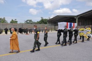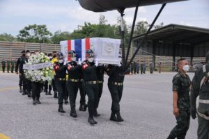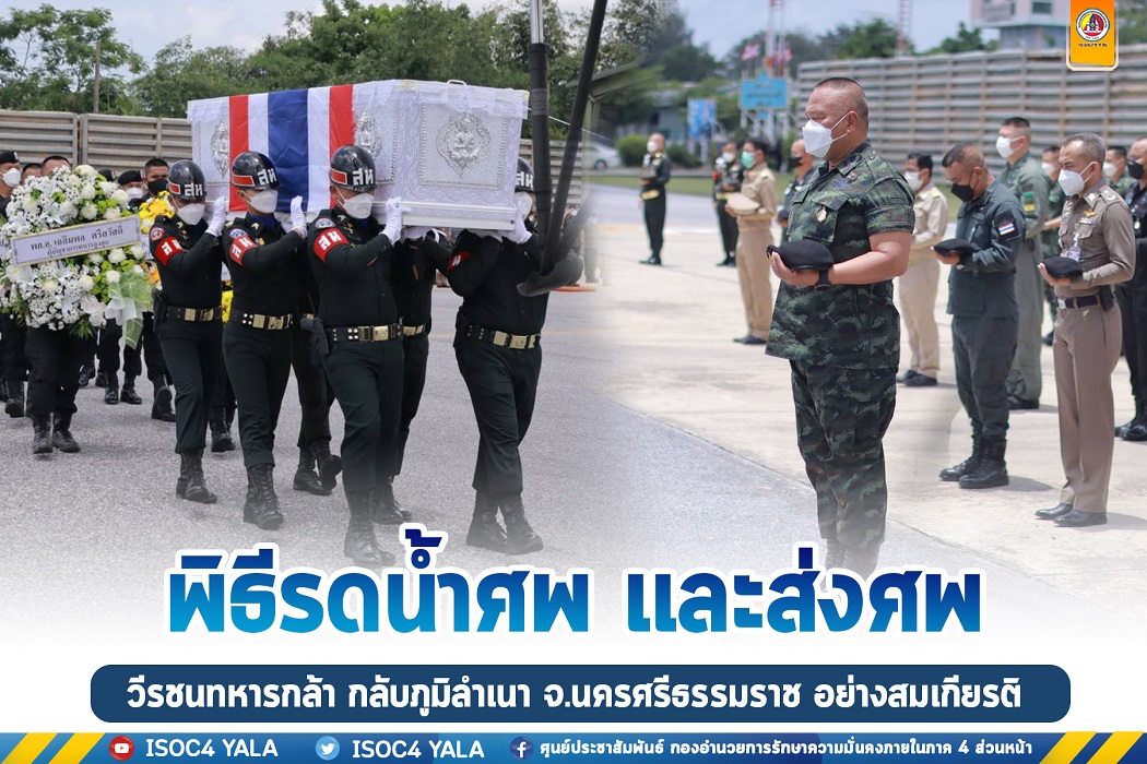 จากนั้น เวลา 12.10 น. ที่ สนามบินบ่อทอง อำเภอหนองจิก จังหวัดปัตตานี แม่ทัพภาคที่ 4/ ผู้อำนวยการรักษาความมั่นคงภายในภาค 4 เป็นประธานพิธีส่งศพของอาสาสมัครทหารพราน จิโรจ จิตวิสุทธิ์ เพื่อกลับไปบำเพ็ญกุศลยังภูมิลำเนาจังหวัดนครศรีธรรมราช ทั้งนี้ครอบครัวได้กำหนดให้มีพิธีสวดพระอภิธรรมศพ ระหว่างวันที่ 17 – 22 มีนาคม 2565 และมีกำหนดพิธีพระราชทานเพลิงศพ ในวันที่ 23 มีนาคม 2565 เวลา 14.00 น. ณ วัดวังเลา หมู่ที่ 2 ตำบลนาเหรง อำเภอนบพิตำ จังหวัดนครศรีธรรมราช