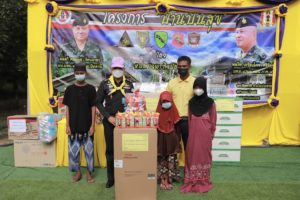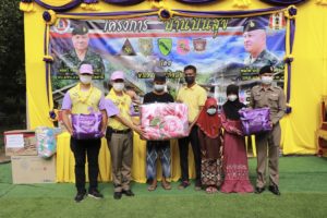 ในโอกาสนี้ รองแม่ทัพภาคที่ 4 / รองผู้อำนวยการรักษาความมั่นคงภายในภาค 4 ส่วนหน้า มอบพระบรมฉายาลักษ์พระบาทสมเด็จพระวชิรเกล้าเจ้าอยู่หัว และสมเด็จพระนางเจ้าสุทิดา พัชรสุธาพิมลลักษณ พระบรมราชินี และอันเชิญถุงพระราชทาน ความห่วงใยจากในหลวงและพระราชินี สู่ประชาชน พร้อมทั้งช่วยติดตั้งพระบรมฉายาลักษณ์ติดตั้งบ้านเลขที่ และเข้าไปเยี่ยมชมภายในบ้าน นอกจากนี้ประธานและหน่วยงานที่เกี่ยวข้องยังร่วมมอบเครื่องใช้ไฟฟ้า ชุดเครื่องนอน และเครื่องอุปโภค-บริโภคที่จำเป็นในการดำเนินชีวิตให้กับครอบครัว ทางด้านของนายอับดุลเลาะ ก็ได้นำส้มโอปูโกยะรัง ของดีขึ้นชื่อในพื้นที่อำเภอยะรังมอบให้กับประธานในพิธี และได้เยี่ยมชมสวนเศรษฐกิจพอเพียงบริเวณรอบๆบ้าน ที่หลายหน่วยงานร่วมกันสนับสนุนเพื่อสร้างความมั่นคงทางอาหาร และสร้างอาชีพให้กับครอบครัวของนายอับดุลเลาะ อีปง ต่อไป