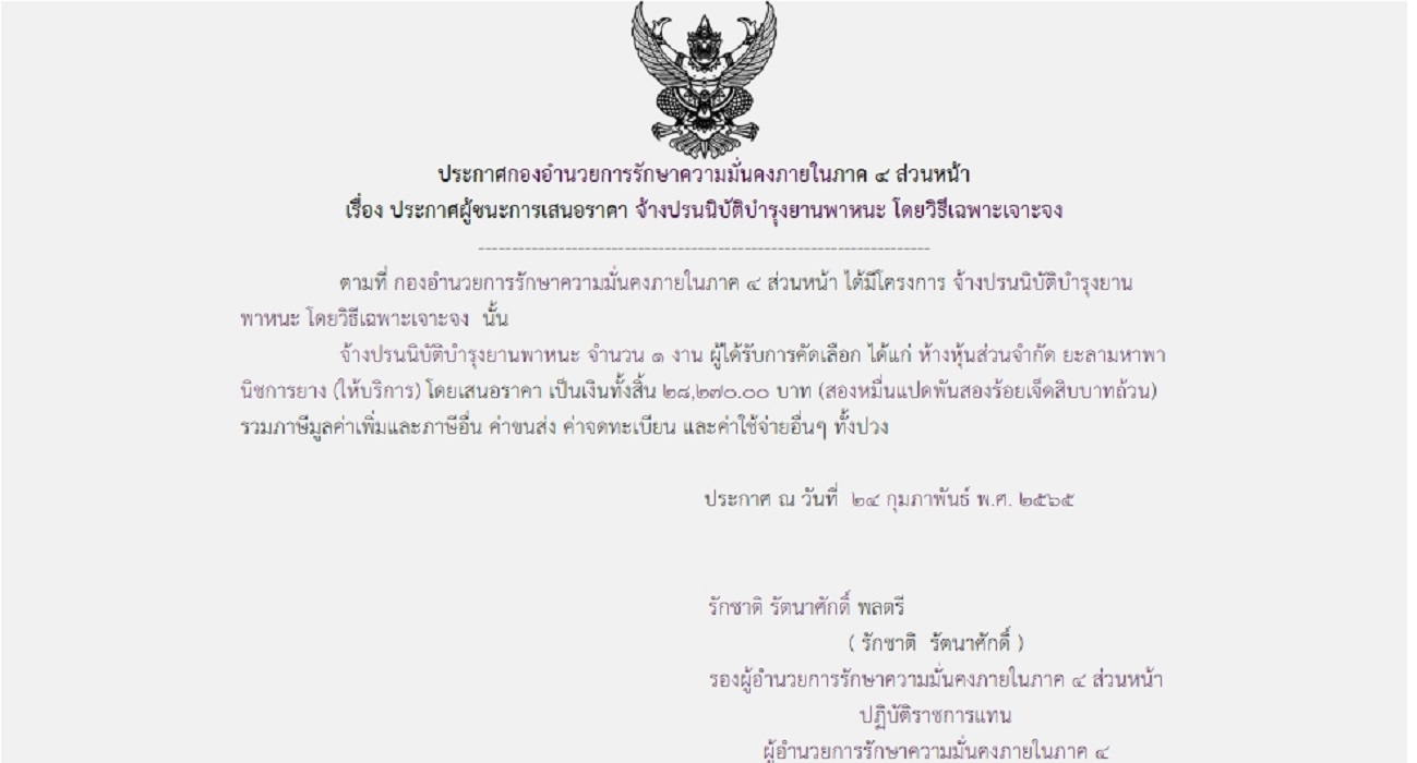 จัดซื้อ จัดจ้างประกาศผู้ชนะการเสนอราคา ประการผู้ชนะการเสนอราคา จ้างปรนนิบัติบำรุงยานพาหนะ โดยวิธีเฉพาะเจาะจง March 20, 2022 445 Share Facebook Twitter Google+ Telegram LINE