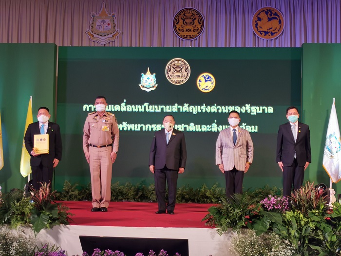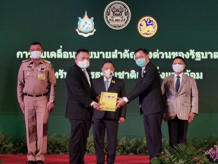 พลเอก ประวิตร ได้กล่าวมอบนโยบาย การขับเคลื่อนนโยบายสำคัญเร่งด่วนของรัฐบาลด้านทรัพยากรธรรมชาติและสิ่งแวดล้อม ที่สำคัญได้แก่ การเน้นย้ำขอให้ ผู้ว่าราชการจังหวัดเป็นกลไกลหลักในการบูรณาการความร่วมมือ จากทุกภาคส่วน เพื่อขับเคลื่อนโครงการต่าง ๆ ตามมติ คณะรัฐมนตรีเมื่อ13 ส.ค.63 ในการแต่งตั้ง คณะขับเคลื่อนไทยไปด้วยกัน ระดับจังหวัด ประกอบด้วย 1)โครงการปลูกป่า และป้องกันไฟป่า ให้มีการสร้างกลไกการรับรู้ โดยใช้เครือข่ายจิตอาสาพระราชทาน เป็นช่องทางการสื่อสาร และสร้างความร่วมมือกับภาคประชาชน 2)โครงการป่าชุมชน ให้มีการจัดตั้ง ฟื้นฟูและขยายป่าชุมชน รวมทั้งพัฒนาคุณภาพชีวิตของราษฎร ที่อยู่อาศัย และที่ทำกินในป่าชุมชน 3)โครงการ คทช.(คณะกรรมการนโยบายที่ดินแห่งชาติ) ให้มีการเร่งรัด สำรวจ ถือครอง และจัดระเบียบการใช้ประโยชน์ในพื้นที่ป่าโดยเฉพาะพื้นที่ป่าต้นน้ำ 4)การแก้ไขปัญหาหมอกควัน และ pm 2.5โดยใช้กลไกภายใต้โครงการปลูกป่า และป้องกันไฟป่า พร้อมจัดตั้ง War room ระดับชาติ จนถึงระดับท้องถิ่นในพื้นที่เสี่ยงไฟป่า รวมทั้งจัดชุดพิทักษ์ป่าประจำหมู่บ้าน และนำเทคโนโลยีที่ทันสมัยมาใช้ปฏิบัติงานในพื้นที่ และ 5)การบริหารจัดการน้ำและการเติมน้ำลงดิน โดยเน้นให้มีการ จัดหาแหล่งน้ำ พร้อมระบบกระจายน้ำ ด้วยพลังงานแสงอาทิตย์ ให้ประชาชนทำการเกษตรแบบแปลงใหญ่ ทุกอำเภอทั่วประเทศ และนำองค์ความรู้เรื่องการเติมน้ำใต้ดิน ไปปฏิบัติจริงในพื้นที่ เพื่อให้สอดคล้องกับความต้องการ ของประชาชน หลังจากนั้น พลเอก ประวิตร ได้ร่วมเป็นสักขีพยานการส่งมอบคู่มือปฏิบัติการขับเคลื่อนนโยบายฯ ของ ทส.ให้กับ มท. เพื่อนำไปขยายผลสู่การปฏิบัติในพื้นที่ ทุกจังหวัดของประเทศ ต่อไป