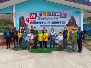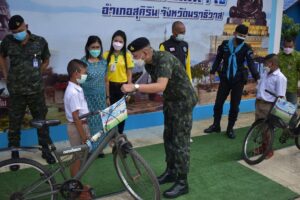 เมื่อวันที่ 24 มีนาคม 2565 ที่ โรงเรียนนิคมพัฒนา 7 ตำบลสุคิริน อำเภอสุคิริน จังหวัดนราธิวาส มณฑลทหารบกที่ 42 ขับเคลื่อนโครงการ “จักรยาน สานฝัน ปันสุข กองทัพบก” เพื่อส่งมอบให้เด็กนักเรียน ในพื้นที่ จังหวัดชายแดนภาคใต้ เพื่อเติมรอยยิ้ม ให้เด็กนักเรียนในชนบทนำรถจักรยานที่ได้รับนำไปใช้ประโยชน์ในการเดินทาง โดยให้หน่วยขึ้นตรงนำจักรยานเก่าที่มีผู้บริจาคมาซ่อมแซมใหม่ให้อยู่ในสภาพพร้อมใช้งาน และส่งมอบให้กับเด็กนักเรียนที่อยู่ในชนบท และมีฐานะยากจน เด็กนักเรียนที่ผ่านการพิจารณา ซึ่งกิจกรรมในครั้งนี้ พันเอก ปริวิทย์ สุทธิโมกข์ รองเสนาธิการมณฑลทหารบกที่ 42 /รองผู้อำนวยการศูนย์ป้องกันและปราบปรามยาเสพติด กองอำนวยการรักษาความมั่นคงภายในภาค 4 ส่วนหน้า เป็นผู้แทนผู้บัญชาการมณฑลทหารบกที่ 42 / ผู้อำนวยการศูนย์ป้องกันและปราบปรามยาเสพติด กองอำนวยการรักษาความมั่นคงภายในภาค 4 ส่วนหน้า ส่งมอบให้กับเด็กนักเรียนจากโรงเรียนนิคมพัฒนา 7 ซึ่งอยู่ในพื้นที่จังหวัดนราธิวาส จำนวน 2 ราย ประกอบด้วย เด็กชายโรจนศักดิ์ ไพสาลี อายุ 11 ปี กำลังศึกษาชั้นประถมศึกษาปีที่ 4 และ เด็กชายสรศักดิ์ แซ่ภู่ อายุ 11 ปี กำลังศึกษาชั้นประถมศึกษาปีที่ 5