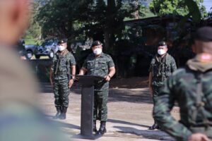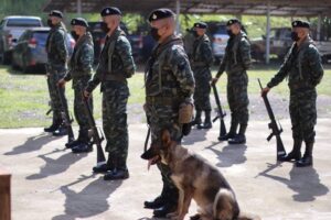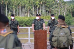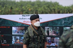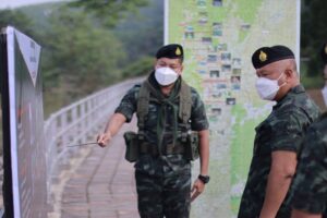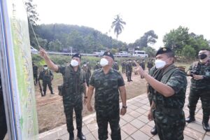 วันนี้ 27 มีนาคม 2565 เวลา 09.30 น. พลโท เกรียงไกร ศรีรักษ์ แม่ทัพภาคที่ 4/ผู้บัญชาการศูนย์ปฏิบัติการกองทัพภาคที่ 4 เดินทางลงพื้นที่ตรวจเยี่ยม การปฏิบัติงานกองร้อยทหารราบเฉพาะกิจ กองกำลังเทพสตรี มอบนโยบาย และแนวทางในการปฏิบัติงานให้แก่เจ้าหน้าที่ ในภารกิจสกัดกั้นการกระทำผิดกฎหมายตามแนวชายแดนไทย-เมียนมาร์ ด้านจังหวัดระนอง โดยมี พันเอก ภูมิพัฒน์ บุญเรืองขาว ผู้บังคับหน่วยเฉพาะกิจกรมทหารราบที่ 25 ให้การต้อนรับ ก่อนมอบสิ่งของอุปโภค-บริโภค อุปกรณ์ป้องกันตนเอง จากการแพร่ระบาดของเชื้อไวรัส covid-19 เพื่อเป็นการบำรุงขวัญและกำลังใจแก่เจ้าหน้าที่ในการปฏิบัติงานต่อไป