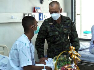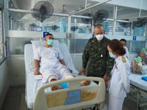 ทั้งนี้ พลตรี เฉลิมพร ขำเขียว ผู้บังคับหน่วยเฉพาะกิจนราธิวาส ได้สอบถามอาการ และเหตุการณ์ที่เกิดขึ้น พร้อมทั้งมอบความห่วงใย และได้มอบกระเช้าเยี่ยมผู้ได้รับบาดเจ็บ พร้อมเงินช่วยเหลือและบำรุงขวัญให้แก่กำลังพล และกล่าวให้กำลังใจเจ้าหน้าที่ผู้ได้รับบาดเจ็บและครอบครัว ตลอดจนกล่าวชื่นชมกำลังพลในการปฏิบัติงานที่ทุ่มเท และเสียสละ ขอให้มีขวัญ กำลังใจที่ดี พร้อมกลับมาปฏิบัติหน้าที่รักษาความมั่นคงปลอดภัยในพื้นที่ต่อไป พร้อมกำชับให้ทุกส่วนที่เกี่ยวข้องดูแลรักษาฟื้นฟูสภาพกำลังพล ทั้งทางด้านร่างกาย และจิตใจที่อย่างดีที่สุด