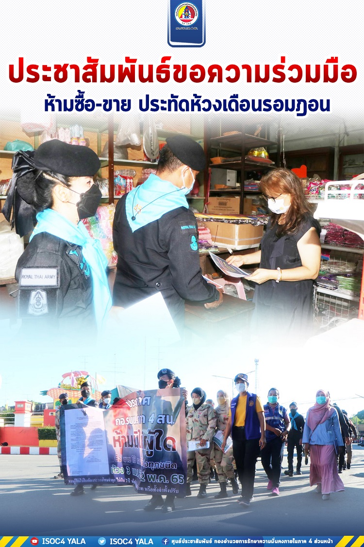 เมื่อวันที่ 29 มีนาคม 2565 หน่วยเฉพาะกิจกรมทหารพรานที่ 45 นำกำลังพลชุดปฏิบัติการเสริมสร้างความเข้าใจของหน่วย ร่วมกับ ศูนย์ปฏิบัติการอำเภอระแงะ เทศบาลตำบลตันหยงมัส เจ้าหน้าที่ตำรวจ เข้าพบปะพูดคุยกับประชาชน เจ้าของร้านค้าในเขตเทศบาลตำบลตันหยงมัส จังหวัดนราธิวาส เพื่อประชาสัมพันธ์เกี่ยวกับการห้าม ซื้อ-ขาย ดอกไม้ไฟ ประทัด และสิ่งที่ทำให้เกิดเสียงดัง ในช่วงเดือนรอมฎอนตั้งแต่วันที่ 3 เมษายน 2565 ถึง วันที่ 2 พฤษภาคม 2565 ตามประกาศของกองอำนวยการรักษาความมั่นคงภายในภาค 4 ส่วนหน้า โดยมีวัตถุประสงค์เพื่อให้ช่วงเดือนรอมฎอน เป็นช่วงเวลาที่ศาสนิกในศาสนาอิสลามได้ปฏิบัติศาสนกิจอันบริสุทธิ์ด้วยความสงบ ปราศจากเหตุการณ์ที่กระทบต่อการปฏิบัติศาสนกิจของศาสนิกทั้งปวง อีกทั้งเพื่อเป็นการส่งเสริมการปฏิบัติศาสนกิจของศาสนาอิสลาม และเพื่อป้องกันอุบัติเหตุที่เกิดขึ้นจากการเล่นดอกไม้เพลิง ลูกประทัด แก่เยาวชนในพื้นที่ หากผู้ใดฝ่าฝืนต้องระวางโทษจำคุกไม่เกิน 2 ปี หรือปรับไม่เกิน 40,000 บาท หรือทั้งจำทั้งปรับ