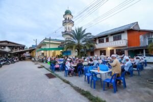 นายนาเส็ด เบ็นแหละแหนะ อีหม่ามประจำมัสยิดตัสดีกียะห์ กล่าวว่า เมื่อถึงห้วงเดือนรอมฎอนในทุกปี ทางคณะกรรมการมัสยิด จะจัดกิจกรรมพัฒนาสัมพันธ์และละศีลอด (เปิดปอซอ) มาอย่างต่อเนื่องเป็นประจำทุกปี เพื่อกระชับความสัมพันธ์ระหว่างกัน ทุกคนจะร่วมกันเปิดปอซอโดยนำอาหาร น้ำดื่มมาร่วมรับประทานกันที่ลานมัสยิดซึ่งเป็นภาพที่คนในพื้นที่มักจะคุ้นเคยกัน แต่ในช่วงสองปีหลังมานี้ เนื่งจากการแพร่ระบาดของโรคโควิด 19 กินกรรมดังกล่าวเริ่มห่างหายไป แต่ได้เปลี่ยนรูปแบบกิจกรรม คือ จำกัดจำนวนผู้ร่วมกิจกรรม หรือนำอาหารไปแจกจ่ายตามบ้านแทน สำหรับวันนี้นับเป็นโอกาสที่ดี หลังจากที่สถานการการแพร่ระบาดของโรคโควิด 19 คลี่คลายลง จึงได้จัดกิจกรรมนี้ขึ้นมาอีกครั้ง และรู้สึกดีใจที่มีหน่วยงานภาครัฐเข้ามามีส่วนร่วม ถึงแม้จะเป็นกิจกรรมของพี่น้องมุสลิม แต่เจ้าหน้าที่และหน่วยงานไม่เคยทอดทิ้งมาร่วมพบปะให้กำลังใจ เป็นการสร้างความเข้าใจและสร้างพื้นที่ให้มีแต่ความรักความสามัคคี และหวังเป็นอย่างยิ่งว่า กิจกรรมครั้งนี้ เป็นจุดเริ่มต้นของความสันติสุขของทุกคน ถึงแม้จะอยู่ท่ามดลางวิกฤตโควิท-19 ก็ตาม