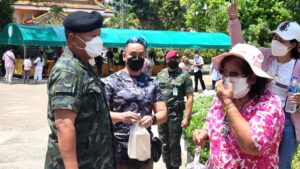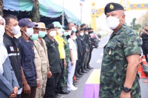 วันนี้ 12 เมษายน 2565 เวลา 11.00 น. ณ จุดบริการประชาชน หน้าศูนย์แสดงสินค้าโอท๊อป อำเภอหนองจิก จังหวัดปัตตานี พลโท เกรียงไกร ศรีรักษ์ แม่ทัพภาคที่ 4/ผู้อำนวยการรักษาความมั่นคงภายในภาค 4 ในฐานะผู้บัญชาการศูนย์ปฏิบัติการกองทัพภาคที่ 4 เดินทางตรวจเยี่ยมด่านตรวจร่วม และจุดบริการประชาชนในช่วงเทศกาลสงกรานต์ ประจำปี 2565 ของศูนย์ปฏิบัติการร่วมป้องกัน และลดอุบัติเหตุทางถนนช่วงเทศกาลสงกรานต์ เทศบาลตำบลบ่อทอง และศูนย์บรรเทาสาธารณภัย มณฑลทหารบกที่ 46 โดยให้กำลังใจเจ้าหน้าที่ประจำจุดบริการประชาชน มอบแนวทางการปฏิบัติงานการบริการพี่น้องประชาชน พร้อมเน้นย้ำในการรักษาความปลอดภัยในพื้นที่ สร้างความเชื่อมั่นให้กับพี่น้องประชาชน กำชับให้กำลังพลปฏิบัติตามมาตรการ ป้องกันการแพร่ระบาดของเชื้อไวรัส covid-19 อย่างเคร่งครัด เป็นตัวอย่างที่ดีให้กับพี่น้องประชาชน ก่อนมอบเครื่องดื่ม อาหารว่าง ให้กับกำลังพลที่ปฏิบัติหน้าที่ประจำจุดบริการประชาชน เพื่อเป็นขวัญ และกำลังใจในการปฏิบัติงานในห้วงเทศกาลสงกรานต์ต่อไป