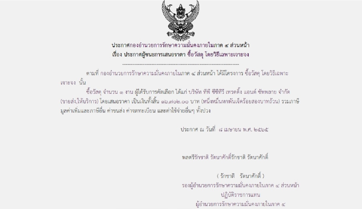 จัดซื้อ จัดจ้างประกาศผู้ชนะการเสนอราคา ประกาศผู้ชนะการเสนอราคา ซื้อวัสดุ โดยวิธีเฉพาะเจาะจง April 12, 2022 567 Share Facebook Twitter Google+ Telegram LINE