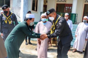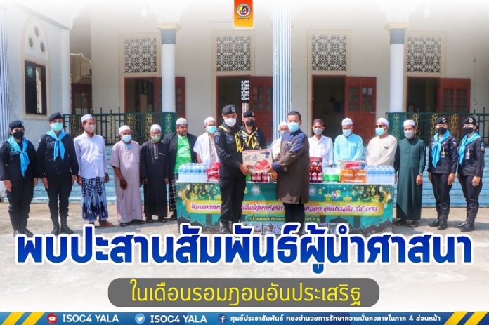 เมื่อวันที่ 15 เมษายน 2565 ที่ มัสยิดอัลกุบรอยห์ บ้านลูโบ๊ะกาเยาะ หมู่ที่ 5 ตำบลเฉลิม อำเภอระแงะ จังหวัดนราธิวาส พันเอกทวีรัตน์ เบญจาทิกุล ผู้บังคับหน่วยเฉพาะกิจกรมทหารพรานที่ 45 พร้อมด้วย ชุดปฏิบัติการเสริมสร้างความเข้าใจ เดินทางพบปะสานสัมพันธ์กับผู้นำศาสนา และผู้นำท้องที่ เพื่อแสดงความยินดีเนื่องในโอกาสเข้าสู่เดือนรอมฎอน ประจำปีฮิจเราะห์ศักราช 1443 ซึ่งเป็นเดือนที่พี่น้องชาวไทยที่นับถือศาสนาอิสลามจะต้องประกอบศาสนกิจตามหลักศรัทธาอย่างเคร่งครัด พร้อมมอบสิ่งของบริโภคสำหรับละศีลอดให้กับผู้นำศาสนา และโต๊ะอิหม่ามประจำมัสยิดในพื้นที่