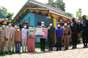 วันนี้ (16 เมษายน 2565) เวลา 10.30 น. พลตรี อุทิศ อนันตนานนท์ รองผู้อำนวยรักษาความมั่นคงภายในภาค 4 ส่วนหน้า/หัวหน้าจิตอาสา 904 ภาค 4 พร้อมด้วย พลตรี ธนัช ฉิมพาลี ผู้บังคับหน่วยเฉพาะกิจยะลา และคณะ ลงพื้นที่บ้านเลขที่ 22/3 หมู่ที่ 3 บ้านตาเน๊าะปูโย๊ะ ตำบลเกะรอ อำเภอรามัน จังหวัดยะลา เป็นประธานพิธีส่งมอบบ้านให้แก่ นางสาวลีต้า มะเด็ง อายุ 55 ปี และครอบครัว ซึ่งเป็นประชาชนที่มีความเดือดร้อนและมีฐานะยากจน มีจิตสาธารณะและปฎิบัติตนเป็นคนดีของสังคม ชอบช่วยเหลือส่วนรวม โดยเฉพาะเรื่องพัฒนาภูมิทัศน์ รวมถึงช่วยเหลือหน่วยงานภาครัฐในด้านต่าง ๆ เป็นผู้ที่ผ่านการพิจารณาตามหลักเกณฑ์ในโครงการ “หน่วยเฉพาะกิจยะลา ไม่ทิ้งท่าน” ของหน่วยเฉพาะกิจกรมทหารพรานที่ 41 พร้อมทั้งได้มอบพระบรมฉายาลักษณ์ พระบาทสมเด็จพระเจ้าอยู่หัวฯ และสมเด็จพระนางเจ้าพระบรมราชินี ตลอดจนมอบถุงยังชีพพระราชทาน ชุดเครื่องนอน เครื่องใช้ไฟฟ้า เครื่องอุปโภค บริโภคแก่ครอบครัว โดยมี พันเอก อรรถพล คงสง ผู้บังคับหน่วยเฉพาะกิจกรมทหารพรานที่ 41 สารวัตรใหญ่สถานีตำรวจภูธรจะกว๊ะ กำนัน ผู้ใหญ่บ้าน นายกองค์การบริหารส่วนตำบลเกะรอ นายอำเภอรามัน ทหาร ตำรวจ จิตอาสา 904 ส่วนราชการที่เกี่ยวข้อง ประชาชน ร่วมให้การต้อนรับ