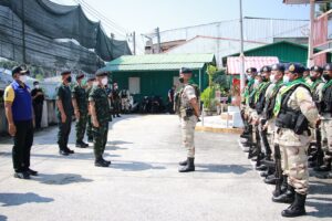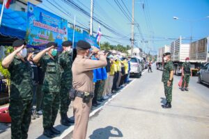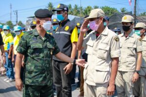 พลตรี ปราโมทย์ พรหมอินทร์ รองผู้อำนวยการรักษาความมั่นคงภายในภาค 4 ส่วนหน้า กล่าวว่า วันนี้ได้รับมอบหมายจากแม่ทัพภาคที่ 4 / ผู้อำนวยการรักษาความมั่นคงภายในภาค 4 ให้ลงพื้นที่มาเยี่ยมให้กำลังใจ เจ้าหน้าที่ทุกฝ่ายทั้งเจ้าหน้าที่ตำรวจ ทหาร และกำลังภาคประชาชน ซึ่งเป็นผู้ที่อุทิศตนในการทำงานรับใช้พี่น้องประชาชนด้วยความเสียสละ ในช่วงเทศกาลสงกรานต์ และในห้วงเดือนรอมฎอนของพี่น้องชาวไทยมุสลิม ซึ่งการปฏิบัติงานที่ผ่านมาถือได้ว่าทุกคนปฏิบัติงานอย่างมีประสิทธิภาพ สามารถบรรเทาอุบัติเหตุที่จะเกิดขึ้นได้เป็นอย่างดี อย่างไรก็ตามในช่วง 7 วันอันตรายเทศกาลสงกรานต์ ในวันนี้น่าจะเป็นวันที่พี่น้องประชาชนเดินทางกลับกันเยอะ ขอฝากพวกเราทุกคนให้ช่วยดูแลความปลอดภัย และช่วยอำนวยความสะดวกให้แก่ผู้ที่เดินทางสัญจรไปมา นอกจากนี้ในช่วงถือศีลอด ของพี่น้องชาวไทยมุสลิม กองอำนวยการรักษาความมั่นคงภายในภาค 4 ส่วนหน้า ได้มุ่งหมายให้เดือนรอมฎอนปีนี้เป็นเดือนรอมฎอนแห่งสันติสุข เพราะฉะนั้นในการปฎิบัติหน้าที่ของเจ้าหน้าที่ทุกภาคส่วนก็จะมุ่งเน้น ในการดูแลพื้นที่ให้ปลอดเหตุ และดูแลพี่น้องประชาชนให้มีความปลอดภัย อำนวยความสะดวกให้พี่น้องชาวมุสลิมได้ประกอบศาสนกิจ ซึ่งตลอดระยะเวลาที่ผ่านมา ตั้งแต่วันที่ 3 เมษายน 2565 จนกระทั่งวันนี้ทุกคนทำงานกันอย่างเต็มที่ ถือได้ว่าเป็นการเสียสละความสุขส่วนตัว ทั้งเจ้าหน้าที่ไทยพุทธ และไทยมุสลิม ถึงแม้ว่าสถานการณ์ความรุนแรงที่ผ่านมาจะเงียบสงบ ยกเว้นเหตุการณ์ล่าสุด ที่มีคนร้ายลอบวางระเบิด ในพื้นที่ อำเภอสายบุรี จังหวัดปัตตานี เมื่อวันที่ 15 เมษายน ที่ผ่านมา เป็นเหตุให้ประชาชนเสียชีวิต 1 ราย เจ้าหน้าที่ตำรวจบาดเจ็บสาหัส 2 ราย และบาดเจ็บเล็กน้อย 1 ราย เพราะฉะนั้นสิ่งที่อยากจะฝากพวกเราทุกคน จะต้องไม่ตกอยู่ในความประมาท ระมัดระวังตนเองอยู่ตลอดเวลา ฝากถึงพี่น้องประชาชนถ้าพบเห็นสิ่งต้องสงสัยให้แจ้งเจ้าหน้าที่โดยทันที สำหรับการแพร่ระบาดของเชื้อไวรัสโควิด-19 อยากให้ทุกคนช่วยกันรณรงค์การฉีดวัคซีน เพื่อป้องกันอาการรุนแรงจากโรคโควิด-19 และการเสียชีวิตให้กับประชาชน สุดท้ายนี้ในนามของ แม่ทัพภาคที่ 4/ผู้อำนวยการรักษาความมั่นคงภายในภาค 4 และในนามของกองอำนวยการรักษาความมั่นคงภายในภาค 4 ส่วนหน้า ต้องขอขอบคุณทุกภาคส่วน ที่ได้มาร่วมกันในการปฏิบัติหน้าที่ เพื่ออำนวยความสะดวกและดูแลความปลอดภัยให้กับพี่น้องประชาชน