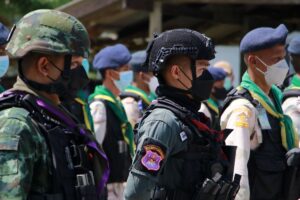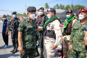 วันนี้ 17 เมษายน 2565 เวลา 09.30 น. พลตรี ปราโมทย์ พรหมอินทร์ รองผู้อำนวยการรักษาความมั่นคงภายในภาค 4 ส่วนหน้า พร้อมคณะ ลงพื้นที่ให้กำลังใจกำลังพล พร้อมแนะนำแนวทางในการปฏิบัติงาน ณ จุดตรวจบริการร่วมป้องกันและลดอุบัติเหตุทางถนนในช่วงเทศกาลสงกรานต์ ประกอบด้วย ชุดคุ้มครองตำบลบาโงยซิแน อำเภอยะหา , ชุดคุ้มครองตำบลลำใหม่ และ ชุดคุ้มครองตำบลลำพะยา อำเภอเมืองยะลา จังหวัดยะลา ในการนี้ ได้มอบเครื่องอุปโภคบริโภคเพื่อเป็นขวัญและกำลังใจในการปฏิบัติงานแก่เจ้าหน้าที่ประจำจุดตรวจดังกล่าว โดยมี พันโท พิศาล ชายเขียว รองผู้บังคับน่วยเฉพาะกิจกรมทหารพรานที่ 47 , ผู้แทนกองอำนวยการรักษาความมั่นคงภายในจังหวัดยะลา , นายอำเภอเมืองยะลา , ปลัดอำเภอ , เจ้าหน้าที่ตำรวจ , ทหาร , กำนัน , ผู้ใหญ่บ้าน , เจ้าหน้าที่สาธารณสุขประจำตำบล , สมาชิกอาสารักษาดินแดน , ชุดรักษาความปลอดภัยหมู่บ้าน ตลอดจนประชาชนจิตอาสาในพื้นที่ ร่วมต้อนรับ