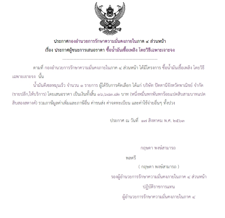 จัดซื้อ จัดจ้างประกาศผู้ชนะการเสนอราคา ประกาศผู้ชนะการเสนอราคา ซื้อน้ำมันเชื้อเพลิง โดยวิธีเฉพาะเจาะจง (16,683.82) August 23, 2020 906 Share Facebook Twitter Google+ Telegram LINE สบป.กอ.รมน.ภาค 4 สน.