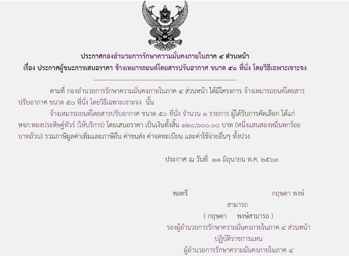 จัดซื้อ จัดจ้างประกาศผู้ชนะการเสนอราคา ประกาศผู้ชนะการเสนอราคา จ้างเหมารถยนต์โดยสารปรับอากาศ ขนาด 50 ที่นั่ง โดยวิธีเฉพาะเจาะจง (120,600.00)(5) August 24, 2020 950 Share Facebook Twitter Google+ Telegram LINE สบป.กอ.รมน.ภาค 4 สน.