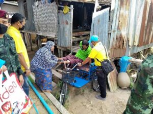 เมื่อวันที่ 22 เมษายน 2565 เวลา 10.00 น. หน่วยเฉพาะกิจกรมทหารพรานที่ 42 พร้อมด้วย ชุดปฏิบัติการเสริมสร้างความเข้าใจของหน่วย ร่วมกับ ชุดสันติสุข 104 กำนัน และส่วนราชการ ลงพื้นที่ไปยังบ้านเลขที่ 109/1 หมู่ที่ 2 ตำบลถนน อำเภอมายอ จังหวัดปัตตานี มอบวีลแชร์ให้กับนายอันวา เวาะมะ ผู้พิการ เพื่อพัฒนาคุณภาพชีวิตความเป็นอยู่ให้ดียิ่งขึ้น ในการอำนวยความสะดวกต่อการดำเนินชีวิต และเป็นการบรรเทาความเดือดร้อนในเบื้องต้นให้กับผู้พิการ สร้างความสุขสร้างรอยยิ้มให้ครอบครัว และประชาชนในพื้นที่