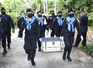 เมื่อวันที่ 22 เมษายน 2565 เวลา 16.30 น. ที่ ชุมชนบ้านทุ่งเค็จ หมู่ที่ 4 ตำบลปะเสยะวอ อำเภอสายบุรี จังหวัดปัตตานี กรมทหารพรานที่ 44 นำกำลังพลชุดปฎิบัติการเสริมสร้างความเข้าใจหญิง ร่วมกับ ผู้นำชุมชน, อาสาสมัครสาธารณสุขประจำหมู่บ้าน (อสม.) และบัณฑิตอาสาในพื้นที่ แจกข้าวกล่องพร้อมน้ำดื่มและอินทผาลัม ให้กับประชาชนที่เป็นผู้พิการ, ผู้ป่วยติดเตียง และผู้สูงอายุ ในพื้นที่ จำนวน 30 ครัวเรือน เพื่อใช้ในการละศีลอด ในห้วงเดือนรอมฎอน สร้างขวัญกำลังใจให้กับประชาชนในพื้นที่เป็นอย่างมาก