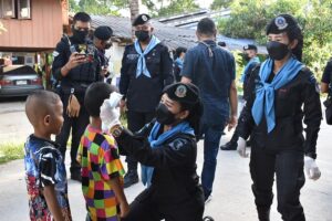 ทั้งนี้ กรมทหารพรานที่ 44 ยังได้จัดชุดหมอเดินเท้า เข้าไปพบปะ เยี่ยมเยียนให้กำลังใจ แจกจ่ายยาเวชภัณฑ์แก่ประชาชนในพื้นที่ อีกทั้งยังได้แจกหน้ากากอนามัยให้แก่เยาวชน พร้อมแนะนำเกี่ยวกับการปฏิบัติตนให้อยู่ภายใต้มาตรการควบคุมการแพร่ระบาดของเชื้อไวรัสโควิด 19 อย่างเคร่งครัด