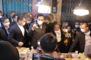 ต่อมานายกรัฐมนตรี/รัฐมนตรีว่าการกระทรวงกลาโหม และคณะ เดินทางไปเยี่ยมให้กำลังใจบรรดาพ่อค้า แม่ค้า และประชาชน บริเวณตลาดกิมหยง อำเภอหาดใหญ่ จังหวัดสงขลา พร้อมติดตามสภาพเศรษฐกิจ และการฟื้นฟูเศรษฐกิจในพื้นที่อำเภอหาดใหญ่ บรรยากาศเป็นไปอย่างคึกคัก พี่น้องประชาชนรอให้กำลังใจ และรอพบนายกรัฐตรีอย่างตื่นเต้น และได้โบกไม้โบกมือทักทายให้กำลังใจนายกรัฐมนตรี และคณะตลอดการเดินทางตรวจเยี่ยม พร้อมกันนี้คณะได้ติดตามโครงการมหานครไร้สาร ซึ่งการไฟฟ้าส่วนภูมิภาคได้จัดทำโครงการนำสายไฟฟ้าลงใต้ดินในพื้นที่กลางเมืองหาดใหญ่ ก่อนพบปะมวลชนที่มูลนิธิมิตรภาพสามัคคี (ท่งเซียเซี่ยงตึ๊ง) หาดใหญ่ และพบปะประชาชน เป็นขวัญกำลังต่อไป