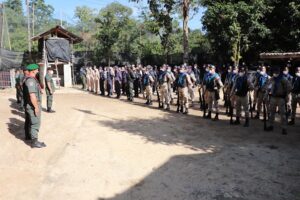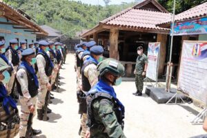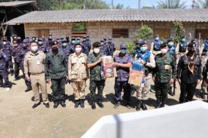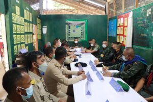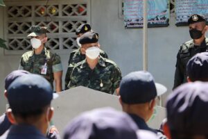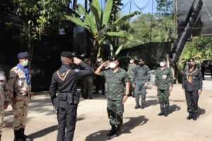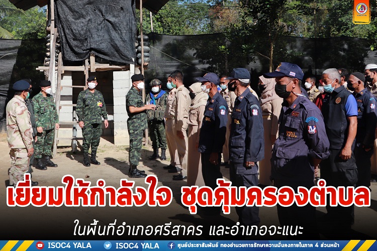 วันที่ 26 เมษายน 2565 พลตรี ปราโมทย์ พรหมอินทร์ รองผู้อำนวยการรักษาความมั่นคงภายในภาค 4 ส่วนหน้า และคณะ ลงพื้นที่ตรวจเยี่ยมพบปะให้กำลังใจชุดคุ้มครองตำบลในพื้นที่ตังหวัดนราธิวาส ได้แก่ชุดคุ้มครองตำบลศรีสาคร ต.ศรีสาคร อำเภอศรีสาคร จังหวัดนราธิวาส, ชุดคุ้มครองตำบลซากอ อำเภอศรีสาคร จังหวัดนราธิวาส และชุดคุ้มครองตำบลช้างเผือก อำเภอจะแนะ จังหวัดนราธิวาส เพื่อพบปะสอบถามความเป็นอยู่ของเจ้าหน้าที่ เสริมสร้างขวัญกำลังใจ อีกทั้งเพื่อเป็นการขอบคุณเจ้าหน้าที่ทุกนายที่ช่วยกันปฏิบัติหน้าที่ ด้วยความเสียสละเพื่อประชาชน พร้อมกันนี้รองผู้อำนวยการรักษาความมั่นคงภายในภาค 4 ส่วนหน้าได้ประชุมมอบนโยบายแนวทางการปฏิบัติงานแก่หน่วยในพื้นที่ และเครื่องบริโภคแก่เจ้าหน้าที่แทนความห่วงใย โดยมี พันเอก จักรกฤษ รัตนะ รองผู้บังคับหน่วยเฉพาะกิจนราธิวาส, พันเอก ศุภชัย สงสังข์ ผู้บังคับหน่วยเฉพาะกิจกรมทหารพรานที่ 49 ตลอดจน ผู้นำท้องที่ ผู้นำท้องถิ่น ส่วนราชการ และชุดคุ้มครองตำบลในพื้นที่ร่วมประชุมพบปะในครั้งนี้