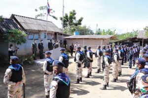 พลตรี ปราโมทย์ พรหมอินทร์ รองผู้อำนวยการรักษาความมั่นคงภายในภาค 4 ส่วนหน้า กล่าวว่า ได้รับมอบหมายจากแม่ทัพ เพื่อมาให้กำลังใจเจ้าหน้าที่ ชุดคุ้มครองตำบลที่ปฏิบัติหน้าที่รักษาความปลอดภัยในพื้นที่ ในนามกองอำนวยการรักษาความมั่นคงภายในภาค 4 ส่วนหน้า ขอบคุณเจ้าหน้าที่ทุกหน่วยที่ได้ปฏิบัติหน้าที่อย่างเข้มแข็ง ทั่งในช่วงเทศกาลสงกรานต์ เฝ้าระวัง 7 อันตราย ซึ่งปฏิบัติไปด้วยความเรียบร้อย ประกอบในห้วงนี้เป็นห้วงของเดือนรอมฎอนของพี่น้องชาวไทยมุสลิม ขอให้ทุกฝ่ายช่วยกันอำนวยความสะดวก เพื่อร่วมสร้างรอมฎอนปีนี้ให้เป็นเดือนรอมฎอนสันติสุข ตามเจตนารมณ์ของแม่ทัพภาคที่ 4 ประกอบกับขณะนี้ เข้าสู่ห้วง 10 วันสุดท้าย ช่วงเอี๊ยะตีก๊าฟ ที่น้องมุสลิมจะประกอบศาสนกิจอย่างเคร่งครัด ฝากไปยังเจ้าหน้าที่ทุกนาย ต้องดูแลตั้งแต่ยามรุ่งเช้า จนถึงช่วงค่ำ และงดเว้นการจัดกิจกรรมที่ไปรบกวนต่อการประกอบศาสนกิจของพี่น้องมุสลิม ร่วมสร้างบรรยากาศเดือนรอมฎอนให้เป็นรอมฎอนสันติสุข