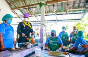 จากนั้น รองผู้อำนวยการรักษาความมั่นคงภายในภาค 4 ส่วนหน้า และคณะ ได้เดินทางไปยัง กลุ่มชมรมผู้สูงอายุ กลุ่มส่งเสริมอาชีพ การทำเครื่องแกงตำมือ บ้านคลองกลาง หมู่ที่ 6 ตำบลควนโนรี อำเภอโคกโพธิ์ จังหวัดปัตตานี เพื่อเยี่ยมให้กำลังใจพบปะ พร้อมมอบเครื่องบดเครื่องแกงให้กับกลุ่มนำไปต่อยอดในการทำเครื่องแกงเพื่อเสริมสร้างรายได้แก่ทางกลุ่ม จากการพบปะครั้งนี้ รองผู้อำนวยการรักษาความมั่นคงภายในภาค 4 ส่วนหน้า และคณะ ได้ร่วมกันตำเครื่องแกง และทดสอบการใช้งานเครื่องบดเครื่องแก ท่ามกลางบรรยากาศที่เป็นกันเอง สร้างความสุขรอยยิ้มให้แก่กลุ่ม รวมถึงผู้สูงอายุ, ผู้นำศาสนา, ผู้นำท้องที่, ผู้นำท้องถิ่น, ประชาชน และส่วนราชการในพื้นที่ร่วมให้การต้อนรับ และพบปะในครั้งนี้