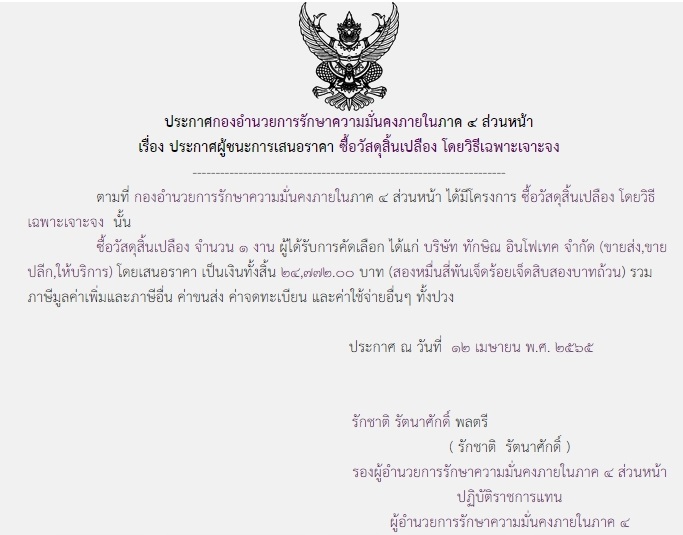 ประกาศผู้ชนะการเสนอราคา ซื้อวัสดุสิ้นเปลือง โดยวิธีเฉพาะเจาะจง (24,772.00 บาท)
