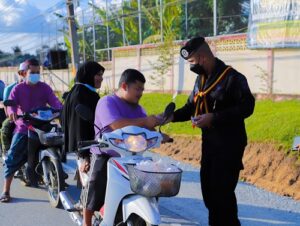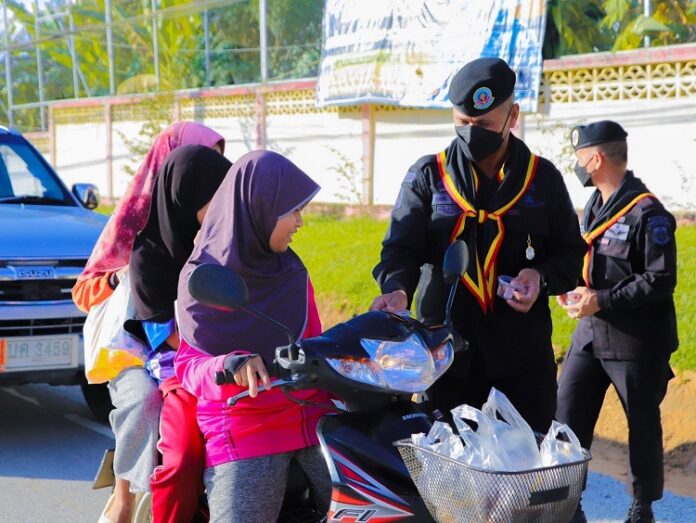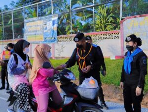 พันเอก ศุภชัย สงสังข์ ผู้บังคับหน่วยเฉพาะกิจกรมทหารพรานที่ 49 พร้อมด้วยกำลังพลชุดปฏิบัติการกิจการพลเรือน หมวดทหารพรานหญิงที่ 49 มอบอินทผลัมให้แก่พี่น้องชาวไทยมุสลิม ที่ขับขี่รถยนต์ และรถจักรยานยนต์สัญจรผ่านไป-มา บริเวณจุดตรวจหน้าฐานปฏิบัติการ หน่วยเฉพาะกิจกรมทหารพรานที่ 49 ตำบลซากอ อำเภอศรีสาคร จังหวัดนราธิวาส เพื่อนำกลับไปรับประทานในในการละศีลอด (เปิดปอซอ) ในช่วงเย็น