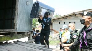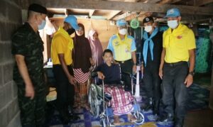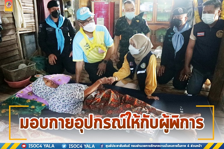 เมื่อวันที่ 29 เมษายน 2565 เวลา 13.00 น. พลตรีนายแพทย์ โชคชัย ขวัญพิชิต ผู้อำนวยการศูนย์ประสานการแพทย์จังหวัดชายแดนภาคใต้ ลงพื้นที่ ตำบลน้ำดำ,ตำบลตะโล๊ะแมะนา,ตำบลพิเทน อำเภอทุ่งยางแดง จังหวัดปัตตานี เพื่อมอบกายอุปกรณ์ ให้กับผู้พิการที่ประสบปัญหาความเดือดร้อนด้านการดำเนินชีวิตประจำวัน จำนวน 16 คน ประกอบด้วย รถเข็น (วีลแชร์) จำนวน 6 คัน, ที่นอนยางพารา จำนวน 8 ผืน, ไม้เท้า 3 ขา จำนวน 1 อัน และเครื่องช่วยพยุง จำนวน 1 อัน เพื่อช่วยอำนวยความสะดวกให้ผู้พิการมีคุณภาพชีวิตที่ดีขึ้น ยังส่งผลดีต่อครอบครัวให้เกิดความตระหนักในคุณค่าของตนเอง และเสริมสร้างพลังใจในการดำเนินชีวิต ตลอดจนเป็นการสร้างขวัญกำลังใจที่ดีให้กับประชาชนในพื้นที่ต่อไป โดยมี ร้อยตรี เริงศักดิ์ สังข์ทอง ผู้บังคับกองร้อยทหารพรานที่ 4402 พร้อมชุดปฏิบัติการเสริมสร้างความเข้าใจ กองร้อยทหารพรานที่ 4402 หัวหน้าส่วนราชการ และประชาชนจิตอาสาในพื้นที่ ร่วมกิจกรรมดังกล่าว