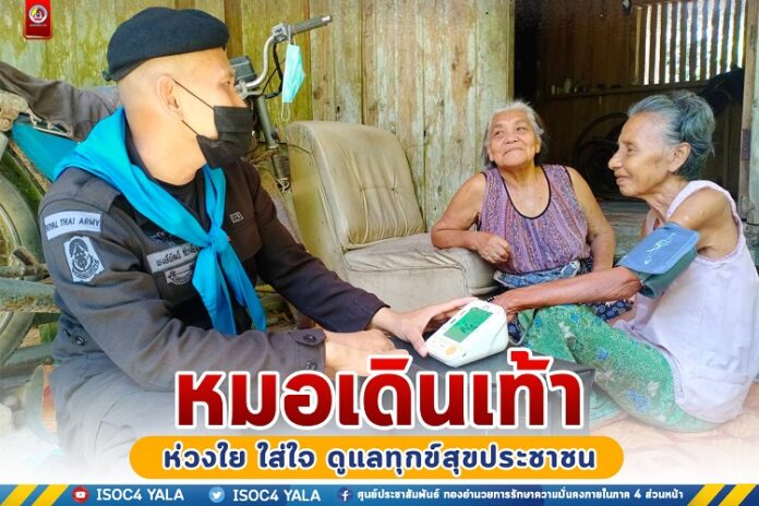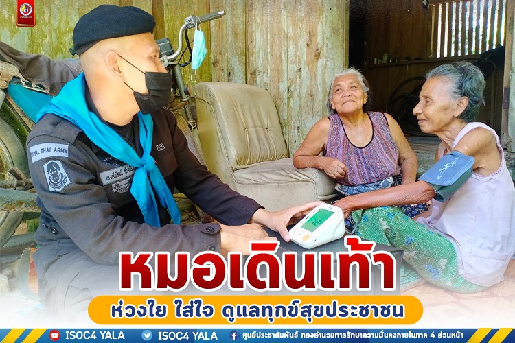 เมื่อวันที่ 30 เมษายน 2565 หน่วยเฉพาะกิจกรมทหารพรานที่ 41 จัดกำลังพลชุดปฏิบัติการเสริมสร้างความเข้าใจ ชุดที่ 1 ลงพื้นที่ชุมชนไทยพุทธบ้านไท ตำบลตะโล๊ะหะลอ อำเภอรามัน จังหวัดยะลา พบปะเยี่ยมเยียนพี่น้องไทยพุทธ พร้อมทั้งสอบถามปัญหาความเดือดร้อน ตลอดจนให้คำปรึกษาในเรื่องปัญหาสุขภาพแก่ประชาชน อีกทั้งได้แจกยาเวชภัณฑ์ พร้อมทั้งให้ความรู้ในการใช้ยาเวชภัณฑ์ที่ถูกต้อง และการรู้จักดูแล ป้องกัน และสังเกตตนเอง ว่ามีความผิดปกติหรือไม่ รู้จักสังเกตอาการแทรกซ้อนของโรคต่างๆ เช่น โรคเบาหวาน ความดัน ไขมัน และโรคที่มาพร้อมกับสภาพอากาศเปลี่ยนแปลง นอกจากนี้เจ้าหน้าที่ยังได้แจ้งเตือนข่าวสารต่างๆ ให้ประชาชนได้รับทราบ เพื่อสร้างความเชื่อมั่น สร้างความมั่นใจในการรักษาความปลอดภัยของเจ้าหน้าที่ในห้วงเดือนรอมฎอน