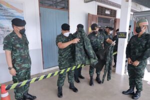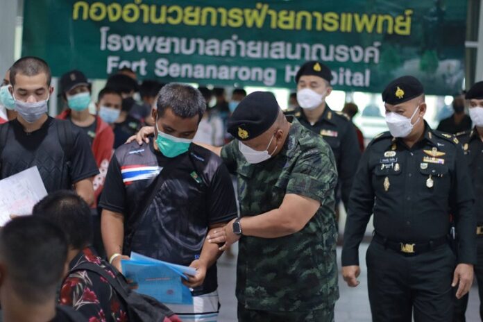 วันนี้ 1 พฤษภาคม 2565 เวลา 15.30 น. ณ มณฑลทหารบกที่ 42 ค่ายเสนาณรงค์ ตำบลคอหงส์ อำเภอหาดใหญ่ จังหวัดสงขลา พลโท เกรียงไกร ศรีรักษ์ แม่ทัพภาคที่ 4/ผู้อำนวยการรักษาความมั่นคงภายในภาค 4 เดินทางตรวจเยี่ยมการรับ – ส่งทหารกองเกินเข้ากองประจำการ ผลัดที่ 1 ประจำปี 2565 ทั้งนี้ได้ตรวจเยี่ยมตั้งแต่จุดคัดกรอง จุดฉีดวัคซีน เพื่อสร้างความมั่นใจแก่พ่อแม่ผู้ปกครองตลอดจนทหารกองประจำการในขั้นตอนตามที่สาธารณสุขกำหนด โดยได้รับการสนับสนุนเจ้าหน้าที่ในการตรวจคัดกรองจากโรงพยาบาลค่ายเสนาณรงค์ ก่อนตรวจเยี่ยมสถานที่หน่วยฝึกทหารใหม่ของกองพันทหารราบที่ 1 กรมทหารราบที่ 5 ขณะเดียวกันแม่ทัพภาคที่ 4 ยังได้เดินพบปะพูดคุยกับทหารกองประจำการให้คลายความกังวล และขอให้มั่นใจในกระบวนการของกองทัพที่จะดูแลทหารใหม่เสมือนน้องคนเล็กของกองทัพ เสมือนคนในครอบครัวเดียวกัน