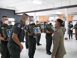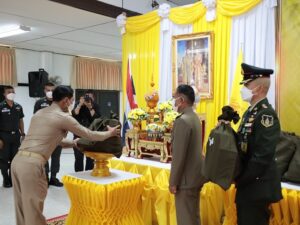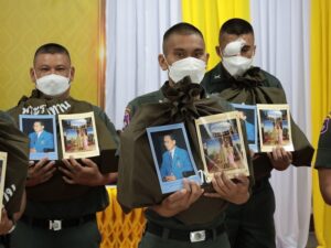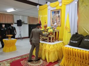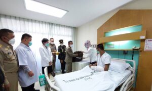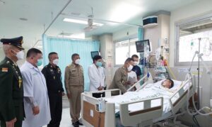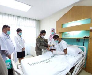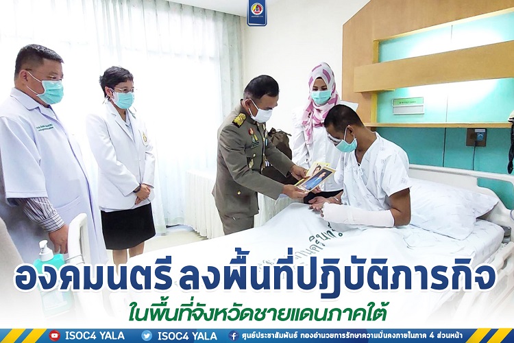 วันนี้ (1 พฤษภาคม 2565) เวลา 07.30 น. ที่โรงพยาบาลสงขลานครินทร์ อำเภอหาดใหญ่ จังหวัดสงขลา พระบาทสมเด็จพระเจ้าอยู่หัว ทรงพระกรุณาโปรดเกล้าโปรดกระหม่อมให้ พลเอก ไพบูลย์ คุ้มฉายา องคมนตรี ลงพื้นที่ปฏิบัติภารกิจเยี่ยมพร้อมให้กำลังใจเจ้าหน้าที่ในพื้นที่จังหวัดชายแดนภาคใต้ และเชิญสิ่งของพระราชทานไปมอบแก่ผู้ได้รับบาดเจ็บจากเหตุการณ์ความรุนแรง จำนวน 2 ชุด ได้แก่ ดาบตำรวจวิศิษฐ์ บัวศรี และดาบตำรวจทนงศักดิ์ เจ๊ะสา ซึ่งอยู่ระหว่างการรักษาตัว เพื่อเป็นขวัญและกำลังใจในการปฏิบัติงาน สร้างความปลื้มปิติและสำนึกในพระมหากรุณาธิคุณ แก่เจ้าหน้าที่และครอบครัวอย่างหาที่สุดมิได้