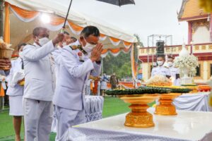 จากนั้น องคมนตรีและคณะ เดินทางต่อไปที่ห้องประชุม สโมสรร่มเกล้า ค่ายจุฬาภรณ์ อำเภอเมือง จังหวัดนราธิวาส ติดตามผลการปฏิบัติงานในรอบ 6 เดือนที่ผ่านมา ที่มีการนำกรอบแนวทางการปฏิบัติงานในปี 2564 คืองานสำคัญเร่งด่วน 5 งาน มาปรับปรุงให้มีความสอดคล้องกับสถานการณ์ในพื้นที่ และตรงความต้องการของประชาชนอย่างแท้จริง ส่งผลให้สถานการณ์ในพื้นที่ดีขึ้นตามลำดับ สร้างความพึงพอใจให้กับประชาชนมีชีวิตความเป็นอยู่ที่ดีขึ้นอย่าง “มั่นคงมั่งคั่ง ยั่งยืน” ตามแผนยุทธศาสตร์ชาติ 20 ปีต่อไป