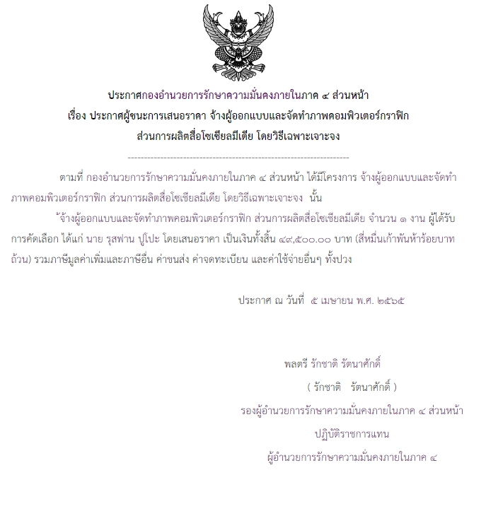 จัดซื้อ จัดจ้างประกาศผู้ชนะการเสนอราคา ประกาศผู้ชนะการเสนอราคา จ้างผู้ออกแบบและจัดทำภาพคอมพิวเตอร์กราฟิก ส่วนการผลิตสื่อโซเชียลมีเดีย โดยวิธีเฉพาะเจาะจง May 5, 2022 388 Share Facebook Twitter Google+ Telegram LINE