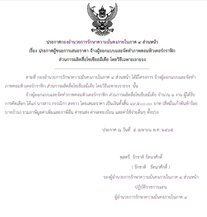 จัดซื้อ จัดจ้างประกาศผู้ชนะการเสนอราคา ประกาศผู้ชนะการเสนอราคา จ้างผู้ออกแบบและจัดทำภาพคอมพิวเตอร์กราฟิก ส่วนการผลิตสื่อโซเชียลมีเดีย โดยวิธีเฉพาะเจาะจง May 5, 2022 466 Share Facebook Twitter Google+ Telegram LINE