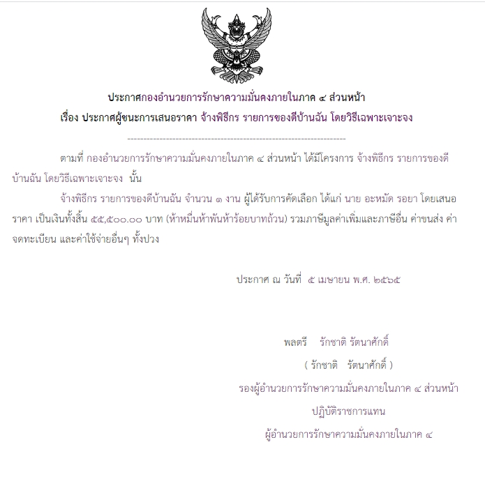 จัดซื้อ จัดจ้างประกาศผู้ชนะการเสนอราคา ประกาศผู้ชนะการเสนอราคา จ้างพิธีกร รายการของดีบ้านฉัน โดยวิธีเฉพาะเจาะจง May 5, 2022 469 Share Facebook Twitter Google+ Telegram LINE