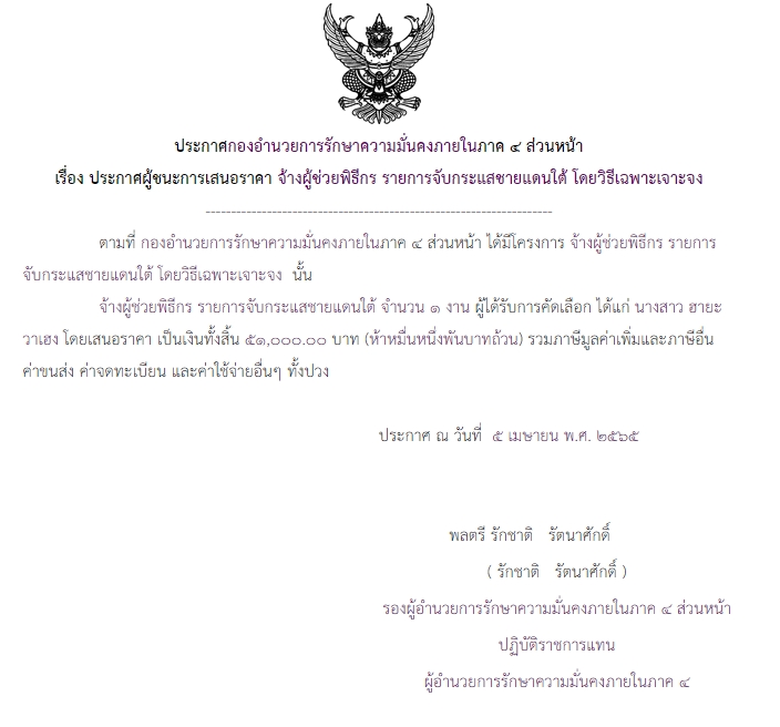 ประกาศผู้ชนะการเสนอราคา จ้างผู้ช่วยพิธีกร รายการจับกระแสชายแดนใต้ โดยวิธีเฉพาะเจาะจง