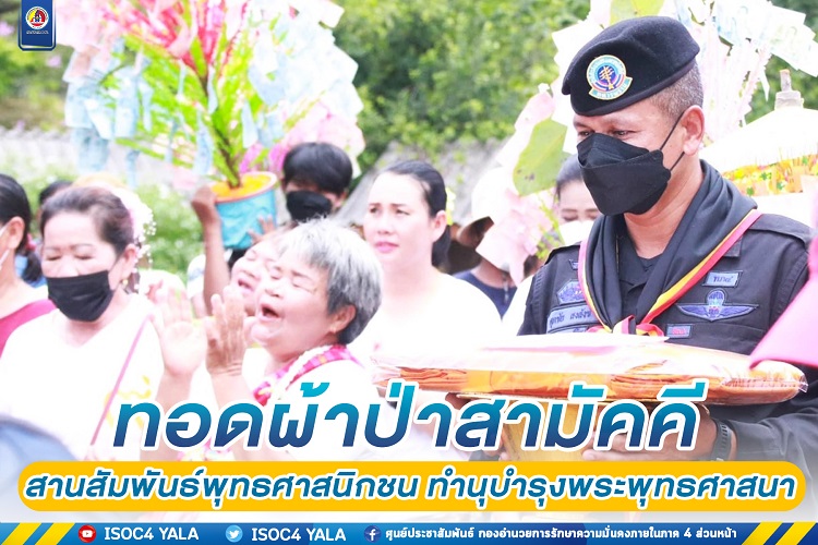 เมื่อวันที่ 4 พฤษภาคม 2565 ที่สำนักสงฆ์อีสานสามัคคีใต้ บ้านน้ำตก หมู่ที่ 5 ตำบลสุคิริน อำเภอสุคิริน จังหวัดนราธฺวาส พันเอก ศุภชัย สงสังข์ ผู้บังคับหน่วยเฉพาะกิจกรมทหารพรานที่ 49 เป็นเจ้าภาพในพิธีทอดผ้าป่าสามัคคี สานสัมพันธ์พุทธศาสนิกชน เพื่อร่วมกันส่งเสริมพุทธศาสนา อนุรักษ์วัฒนธรรม ประเพณีอันดีงามซึ่งแสดงถึงเอกลักษณ์ พร้อมทั้งเป็นการแสดงออกถึงความสมัครสมานสามัคคีของประชาชนในพื้นที่