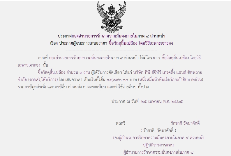 จัดซื้อ จัดจ้างประกาศผู้ชนะการเสนอราคา ประกาศผู้ชนะการเสนอราคา ซื้อวัสดุสิ้นเปลือง โดยวิธีเฉพาะเจาะจง May 6, 2022 566 Share Facebook Twitter Google+ Telegram LINE