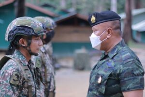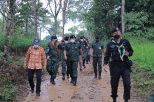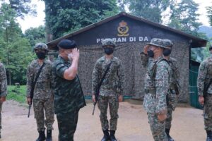 จากนั้นแม่ทัพภาคที่ 4 และคณะ เดินทางยังฐานปฏิบัติการบ้านดีดะ จุดตรวจร่วมไทยมาเลเซีย ตำบลถ้ำทะลุ อำเภอบันนังสตา จังหวัดยะลา ซึ่งเป็นฐานปฏิบัติการของหมวดเฉพาะกิจป้องกันชายแดนที่ 1 กองร้อยป้องกันชายแดนที่ 1 กองกำลังเทพสตรี พบปะพูดคุยกับ พลตรี ดาโต๊ะ มูฮัมหมัด ฮูไซมี บิน ซับบรี ผบ.พล.ร.2 มซ./ประธานคณะทำงานทางบก ฝ่ายมาเลเซีย และคณะ ถึงการทำงานและความสัมพันธ์ทางทหารของทั้ง 2 ประเทศ ทั้งนี้แม่ทัพภาคที่ 4 ได้กล่าวแสดงความยินดีเนื่องในวันฮารีรายออีดิลฟิตรี และขอขอบคุณการทำงานในห้วงระยะเวลาที่ผ่านมาของทหารมาเลเซียในความสามัคคี ทำงานช่วยเหลือเกื้อกูลร่วมกันเป็นอย่างดี ก่อนพบปะพูดคุยกับเจ้าหน้าที่กองกำลังทหารมาเลเซีย ซึ่งปฏิบัติหน้าที่ตามแนวชายแดนไทย – มาเลเซีย ร่วมกับหมวดเฉพาะกิจป้องกันชายแดนที่ 1 กองร้อยป้องกันชายแดนที่ 1 กองทัพบกไทย และมอบของที่ระลึก รวมถึงของอุปโภค บริโภคให้แก่กำลังเจ้าหน้าที่ทั้ง 2 ฝ่าย เพื่อเป็นขวัญกำลังใจ สร้างประสานความร่วมมือเชื่อมความสัมพันธ์อันดีระหว่าง 2 ประเทศ โดยแม่ทัพภาคที่ 4 ได้เดินเท้าไปยังจุดฐานลาดตระเวนร่วม เยี่ยมให้กำลังใจกำลังพลชุดปฏิบัติการพิทักษ์พื้นที่ ขณะทำการลาดตระเวน ร่วมกับกองกำลังทหารมาเลเซีย ก่อนพักค้างแรมในฐานปฏิบัติการบ้านดีดะ ร่วมกับคณะ และกำลังพล สร้างขวัญ กำลังใจในการปฏิบัติงานเป็นอย่างมาก