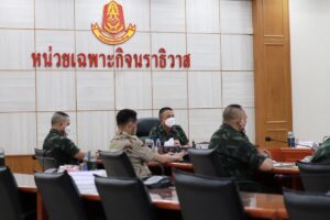 วันนี้ (6 พฤษภาคม 2565) ที่ ประชุมหน่วยเฉพาะกิจนราธิวาส ค่ายกัลยาณิวัฒนา ตำบลกะลุวอ อำเภอเมือง จังหวัดนราธิวาส พลตรี ปราโมทย์ พรหมอินทร์ รองแม่ทัพน้อยที่ 4 /รองผู้อำนวยการรักษาความมั่นคงภายในภาค 4 ส่วนหน้า พร้อมรองเลขาธิการฯ และคณะ ตรวจเยี่ยมหน่วยขึ้นตรงกองอำนวยการรักษาความมั่นคงภายในภาค 4 ส่วนหน้า ในพื้นที่ เพื่อติดตามการปฏิบัติงานสร้างความตระหนักรู้การประชาสัมพันธ์และการขับเคลื่อนหน่วยชุดคุ้มครองตำบล และสนับสนุนแผนเสริมสร้างสันติสุขจังหวัดชายแดนภาคใต้ ประจำปี 2565 โดยมี พันเอก ก่อเกียรติ เข็มแดง รองผู้บังคับหน่วยเฉพาะกิจนราธิวาส , พันเอก ยุทธนา สายประเสริฐ รองผู้บังคับหน่วยเฉพาะกิจนราธิวาส ,หน่วยเฉพาะกิจนาวิกโยธินกองทัพเรือ ,ผู้แทน กอ.รมน.จังหวัดนราธิวาส และหน่วยที่เกี่ยวข้องให้การต้อนรับ