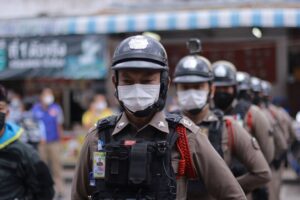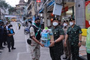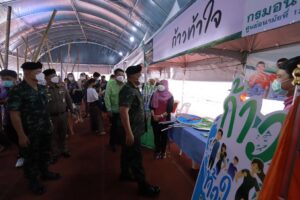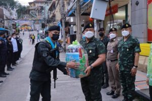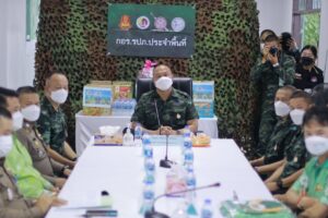 พร้อมกันนี้ แม่ทัพภาคที่ 4 ได้เยี่ยมให้กำลังใจการปฏิบัติงานของกองกำลังพิทักษ์เมืองเบตง 4 ฝ่าย ซึ่งประกอบด้วยเจ้าหน้าที่ตำรวจ ทหาร อาสารักษาดินแดน (อส.) และกำลังภาคประชาชน บริเวณศูนย์ตาสับปะรดเทศบาลเมืองเบตง และเจ้าหน้าที่ประจำจุดตรวจไกรลาศ กำชับกำลังพลเตรียมความพร้อมในการปฏิบัติงาน เพิ่มความเข้มในการตรวจตราต่างๆ ประสานการทำงานอย่างครอบคลุม นอกจากนี้ยังได้เน้นย้ำในมาตรการการป้องกันการแพร่ระบาดของ covid -19 ขณะปฏิบัติหน้าที่ และหากพบเห็นนักท่องเที่ยว ประชาชนในพื้นที่ไม่ปฏิบัติตามมาตรการให้ตักเตือนพูดจาด้วยถ้อยคำที่สุภาพ เพื่อเป็นการป้องกัน covid-19 แพร่ระบาดในพื้นที่อีกทาง โอกาสนี้ได้มอบสิ่งของอุปโภคบริโภค ขวัญกำลังใจให้กับเจ้าหน้าที่อีกด้วย
