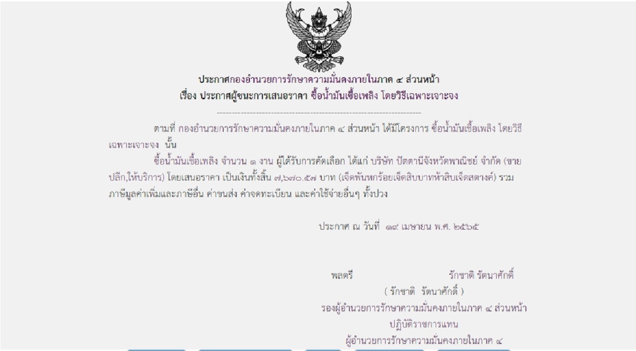 ประกาศผู้ชนะการเสนอราคา ซื้อน้ำมันเชื้อเพลิง โดยวิธีเฉพาะเจาะจง (7,670.57 บาท)