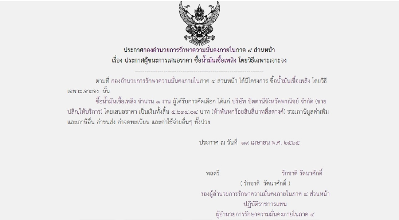 ประกาศผู้ชนะการเสนอราคา ซื้อน้ำมันเชื้อเพลิง โดยวิธีเฉพาะเจาะจง (5,614.04 บาท)