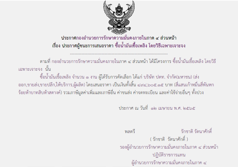 จัดซื้อ จัดจ้างประกาศผู้ชนะการเสนอราคา ประกาศผู้ชนะการเสนอราคา ซื้อน้ำมันเชื้อเพลิง โดยวิธีเฉพาะเจาะจง (๔๙๔,๖๐๕.๑๕บาท) May 7, 2022 546 Share Facebook Twitter Google+ Telegram LINE