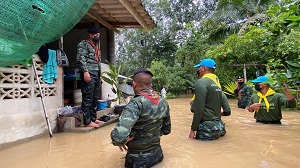 หลังจากที่เกิดฝนตกสะสมต่อเนื่องมาหลายวันทำให้ในวันนี้ (9 พฤษภาคม 2565) พื้นที่อำเภอสะเดา น้ำจากคลองอู่ตะเภา ได้ล้นตลิ่งเข้าท่วมบ้านประชาชนและพื้นที่การเกษตร สวนยางพารา สวนผลไม้ ที่อยู่ตลอดแนวริมคลองอู่ตะเภา อย่างน้อย 3 หมู่บ้านในพื้นที่ ตำบลปริก อำเภอสะเดา จังหวัดสงขลา ทั้ง หมู่ที่ 4 หมู่ที่ 7 และหมู่ที่ 8 โดยเฉพาะบ้านเรือนที่อยู่ในที่ลุ่มต่ำมีระดับน้ำสูงเกือบ 1 เมตร ทหารหน่วยเฉพาะกิจกรมทหารราบที่ 5 โดย กองร้อยทหารราบที่ 5021 นำเรือท้องแบนและลุยน้ำที่ท่วมสูงเข้าไปช่วยเหลือชาวบ้านที่ถูกน้ำท่วมซึ่งบางหลังมีผู้ป่วยติดเตียง ต้องอพยพออกมาอยู่ในที่ปลอดภัย และบางหลังข้าวของเครื่องใช้ถูกน้ำท่วมต้องขนย้ายของหนีน้ำ