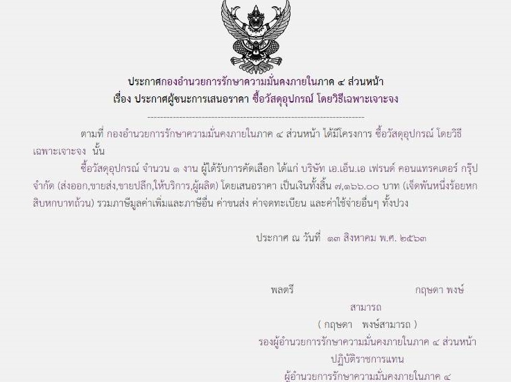 จัดซื้อ จัดจ้างประกาศผู้ชนะการเสนอราคา ประกาศผู้ชนะการเสนอราคา ซื้อวัสดุอุปกรณ์ โดยวิธีเฉพาะเจาะจง(๘) August 26, 2020 1005 Share Facebook Twitter Google+ Telegram LINE สบป.กอ.รมน.ภาค 4 สน.