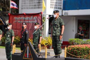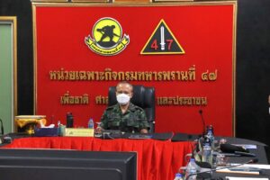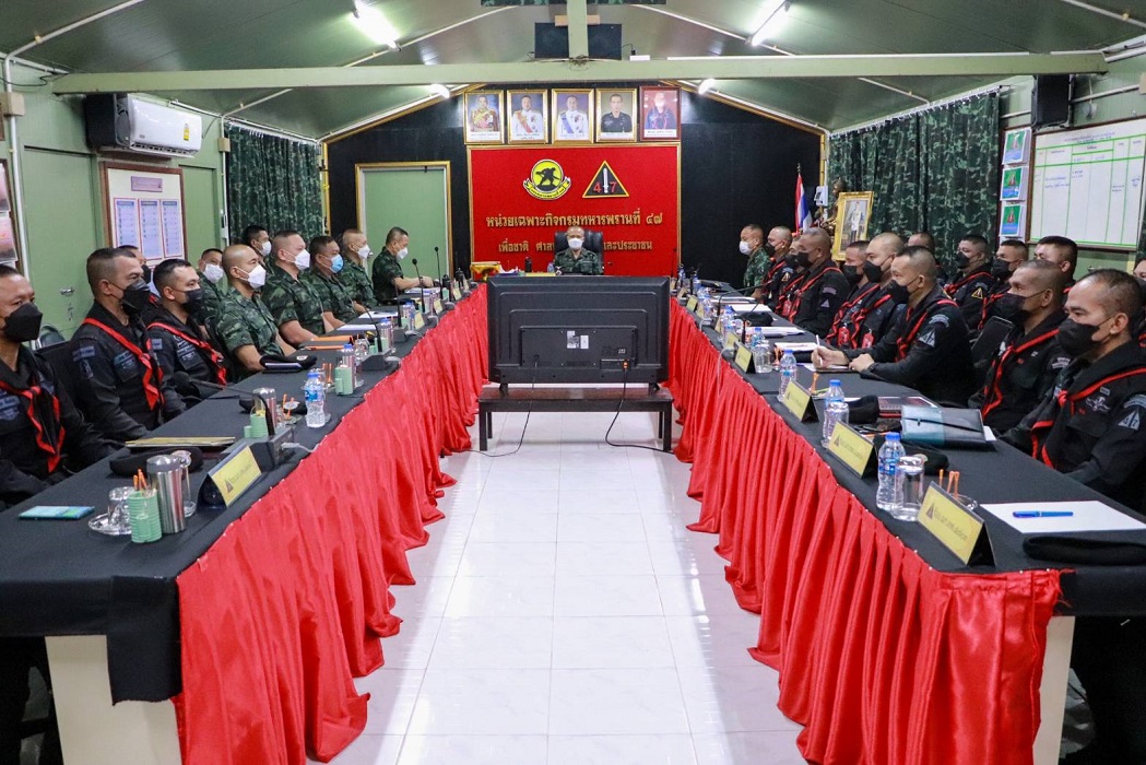 เมื่อวันที่ 10 พฤษภาคม 2565 เวลา 13.30 น. ณ ห้องประชุม หน่วยเฉพาะกิจกรมทหารพรานที่ 47 ตำบลปะแต อำเภอยะหา จังหวัดยะลา พลตรี อุทิศ อนันตนานนท์ รองผู้อำนวยการรักษาความมั่นคงภายในภาค 4 ส่วนหน้า ลงพื้นที่ตรวจเยี่ยม พบปะให้กำลังใจ และร่วมประชุมติดตามการปฎิบัติในห้วงที่ผ่านมา ของหน่วยเฉพาะกิจกรมทหารพรานที่ 47 พร้อมมอบนโยบาย และสั่งการของแม่ทัพภาคที่ 4 เน้นย้ำให้เจ้าหน้าที่ปฏิบัติงานด้วยความไม่ประมาท มั่นสอดส่องดูแลจุดเสี่ยงเพิ่มความเข้มงวดจุดหล่อแหลมต่างๆ ระมัดระวังการก่อเหตุรุนแรงหลังห้วงรอมฎอน พร้อมประชุมหารือกับส่วนที่เกี่ยวข้องและเน้นย้ำข้อสั่งการต่างๆ เพื่อให้การปฏิบัติมีประสิทธิภาพมากยิ่งขึ้น ก่อนมอบเครื่องอุปโภค บริโภค อุปกรณ์ในการป้องกันตนเองจากการแพร่ระบาดของเชื้อไวรัส covid-19 เพื่อให้กำลังพลได้มีกำลังใจปฏิบัติภารกิจให้สำเร็จลุล่วง สร้างความเชื่อมั่นให้กับพี่น้องประชาชน โดยมีผู้บังคับหน่วยเฉพาะกิจกรมทหารพรานที่ 47, หัวหน้าส่วนที่เกี่ยวข้องร่วมให้การต้อนรับและร่วมประชุม
